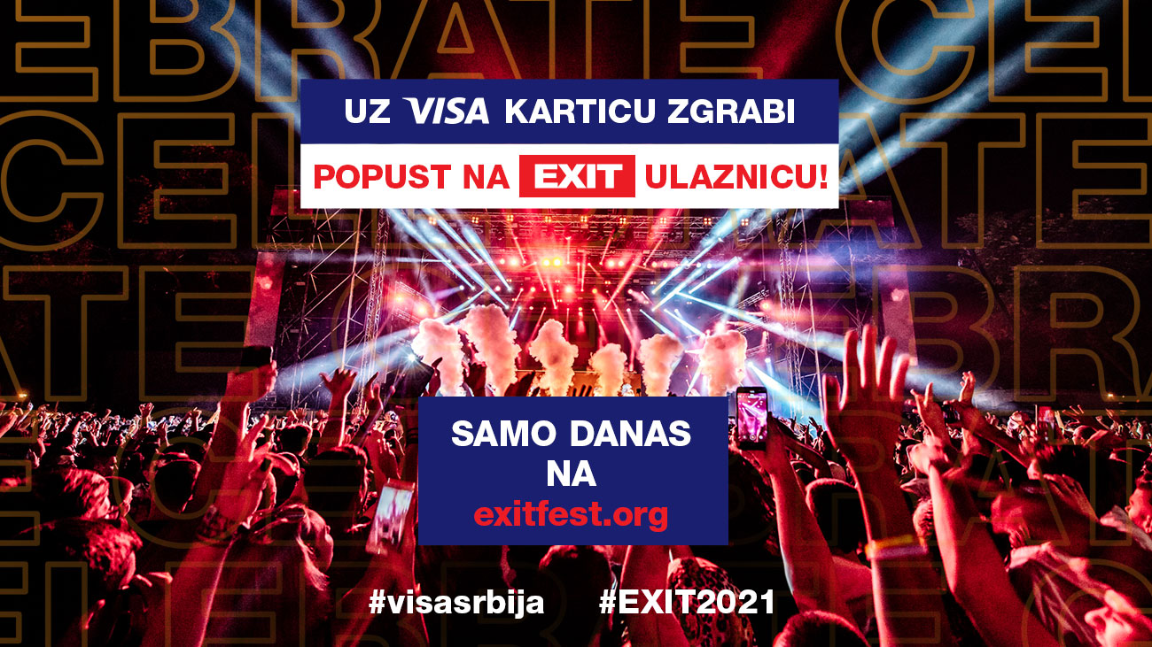 Danas, kroz ceo dan, EXIT i Visa ti daju mogućnost da uz online kupovinu jednodnevnih i četvorodnevnih festivalskih ulaznica Visa karticom ostvariš popust od 10 odsto!
