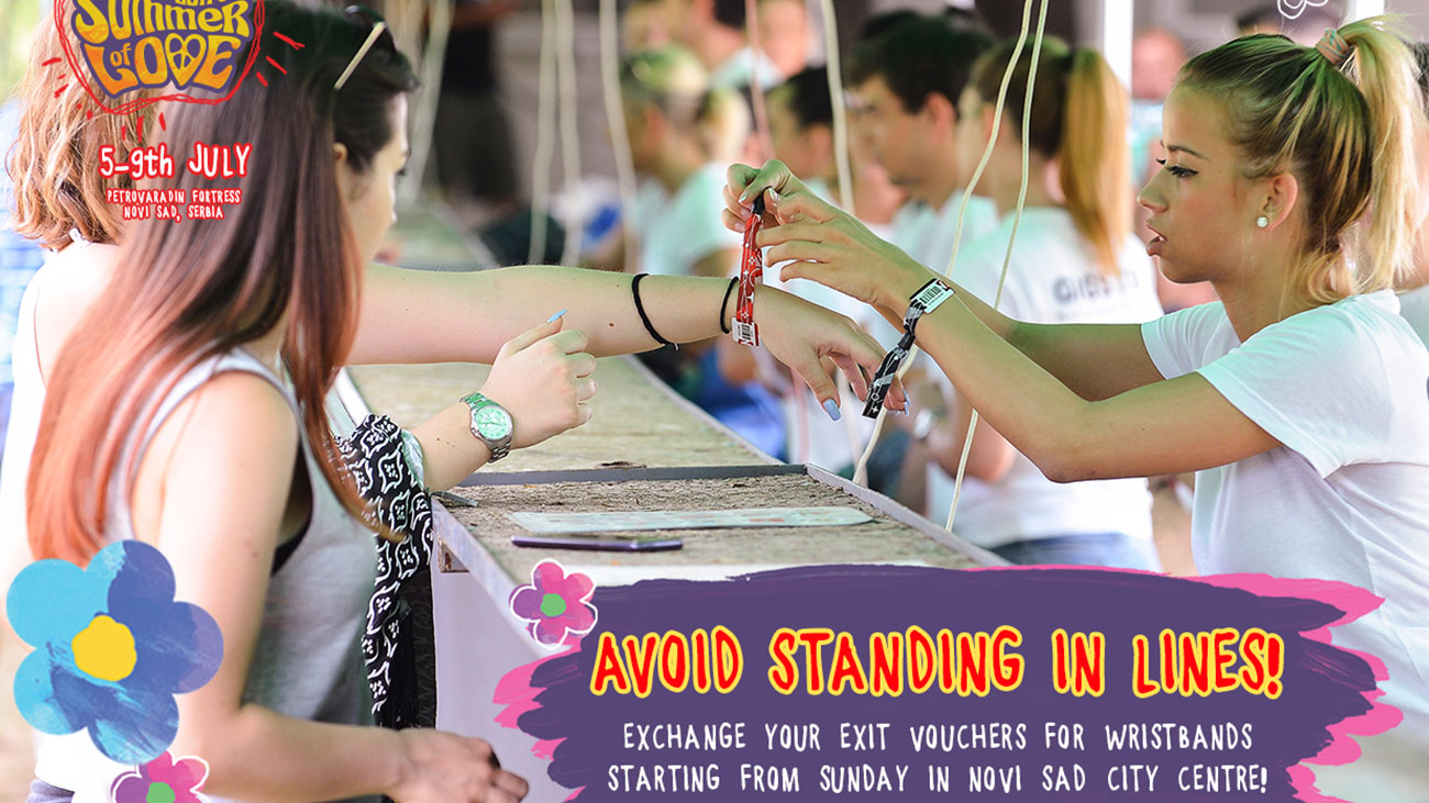 In order to shorten the cues in peak times, points for changing your tickets/e-tickets for festival wristbands will be open from Sunday, July 2! It is mandatory to exchange the tickets for wristbands, except for those with daily tickets who can use them to enter directly at festival gates.