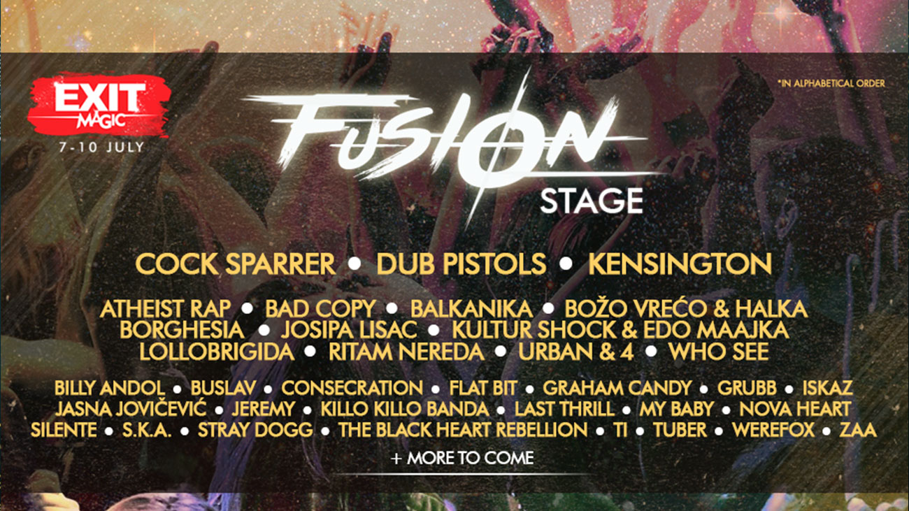 Just like previous years, EXIT Festival’s Fusion Stage will be the meeting ground for local, regional and performers from across the planet. During four days over 40 bands and more than 150 artists will create an amazing atmosphere for the audience at the Petrovaradin Fortress, bringing the recognizable cosmopolitan vibe which symbolizes one of EXIT Festival’s most beloved stages! Cock Sparrer (UK), The Black Heart Rebellion (Bel), My Baby (NL), Dub Pistols (UK), Kensington (NL), Nova Heart (CN), Tuber (GR), as well as local heroes,Josipa Lisac, Urban&4, Stray Dogg, Who See and many more are just some of the names which will introduce the colorful musical world of Exit’s Fusion Stage.