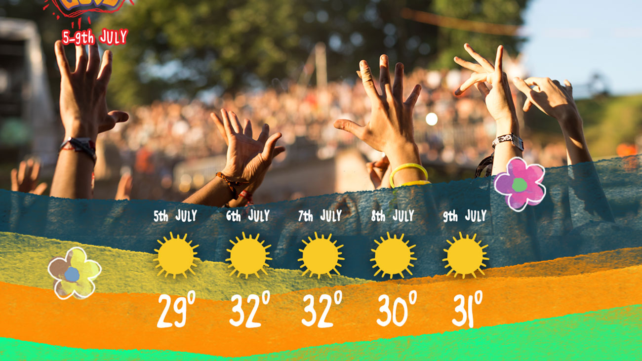 Leave your umbrellas, raincoats and rubber boots at home, but be sure to bring your sunnies, hats and other summer accessories! There is no chance of rain so we will be able to fully enjoy the expected performances by some of the biggest music names.