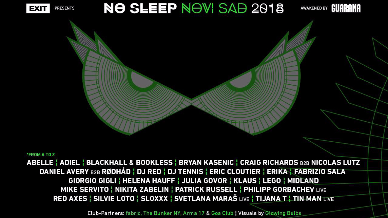 International success of EXIT Festival’s stage can be characterized as meteoric, with media praises that proclaim it “the place where Exit’s lineup truly shines” or “only a few stages in the world can compare”! At this custom designed, recognizable stage, EXIT partnered with some of the world’s most exciting clubs such as Concrete (Paris), Tresor (Berlin), Fuse (Brussels), Sub Club (Glasgow), Grelle Forelle (Vienna), Avant Garde (London), Nitsa (Barcelona), Salon des Amateurs (Dusseldorf) and 20/44 and Drugstore from Belgrade. The EXIT’s No Sleep launch parties have been thrown in these legendary clubs, and this year the warm up tour goes over the Atlantic.