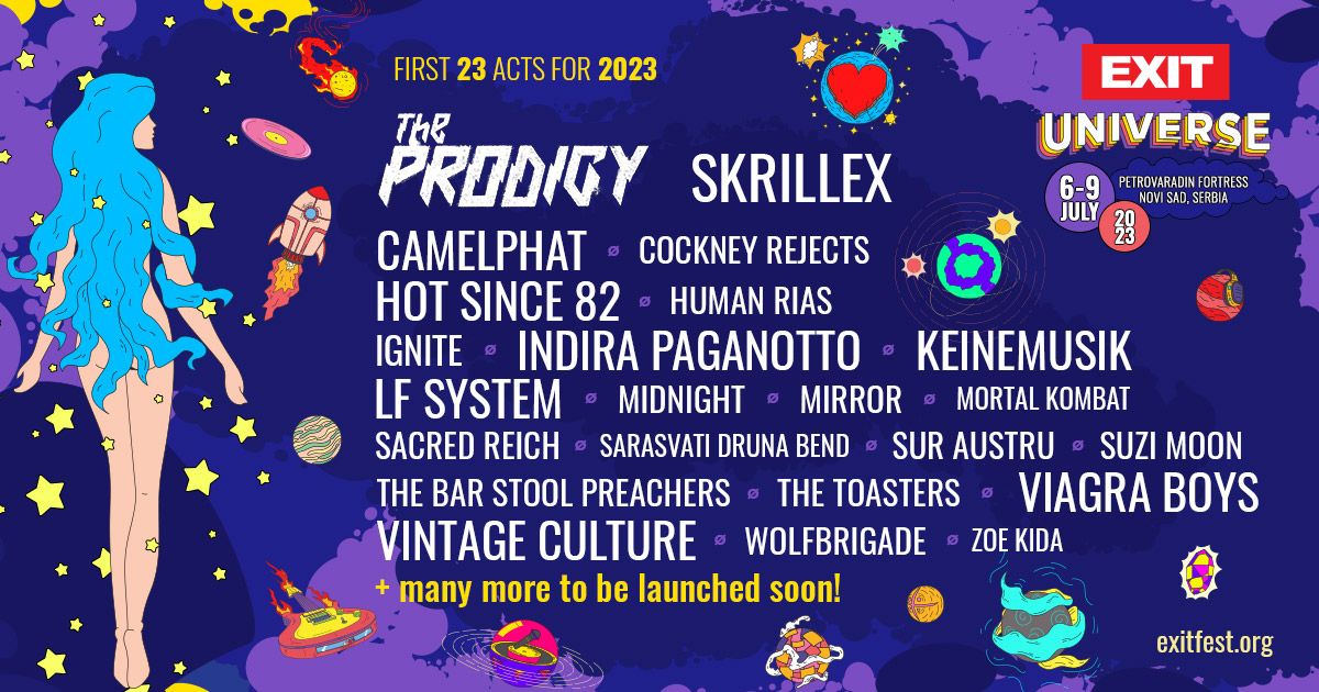 Del 10 al 14 de julio, EXIT acogerá a luminarias de diversos géneros musicales e iconos musicales legendarios, incluidos Tom Morello, Carl Cox, Black Eyed Peas, Gucci Mane, Cavalera, Bonobo DJ set, Black Coffee, Maceo Plex, Sama’ Abdulhadi, Klangkuenstler, Oliver Tree, Sara Landry, Patrick Mason, ARTBAT, Kenya Grace, I Hate Models, Ofenbach, Altin Gün y muchos, muchos más.
