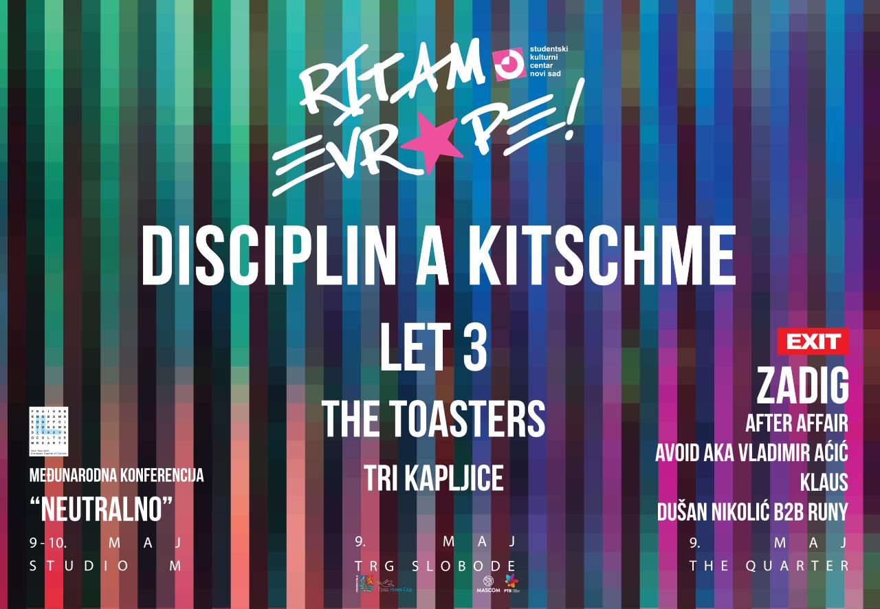 U duhu obeležavanja Dana pobede nad fašizmom, u Novom Sadu će danas biti održano veliko slavlje na tri lokacije, kojim će Novosađani ujedno proslaviti i titulu Najboljeg velikog evropskog festivala koju je EXIT nedavno osvojio po drugi put u ovoj deceniji! Muzički program počeće već u 19.30h, kad će na tradicionalnoj manifestaciji Ritam Evrope! u organizaciji Studentskog kulturnog centra Novi Sad na Trgu slobode nastupiti novosadski sastav Tri kapljice, nakon kojih će na centralnom novosadskom platou u 20.20h na binu izaći njujorški bend The Toasters. Slavlje se nastavlja u 21.40h nastupom popularnog rok sastava iz slobodarske Rijeke, Leta 3, a u 23h na scenu dolaze legende domaće i regionalne muzičke scene, Disciplin A Kitschme. Žurka se ne zaustavlja, već će u duhu proslave Exitove titule biti nastavljena u popularnom novosadskom klubu Quarter, gde program počinje već u 22h, kad će nastupiti Dušan Nikolić b2b Runy, a nakon njihovog seta u 23.30h nas očekuje sarajevski tech-house After Affair. Pobednička fešta nastaviće se u 1h uz francuskog tehno barda Zadiga i trajati sve do 5h uz b2b set domaćih tehno heroja Avoida i Klausa.