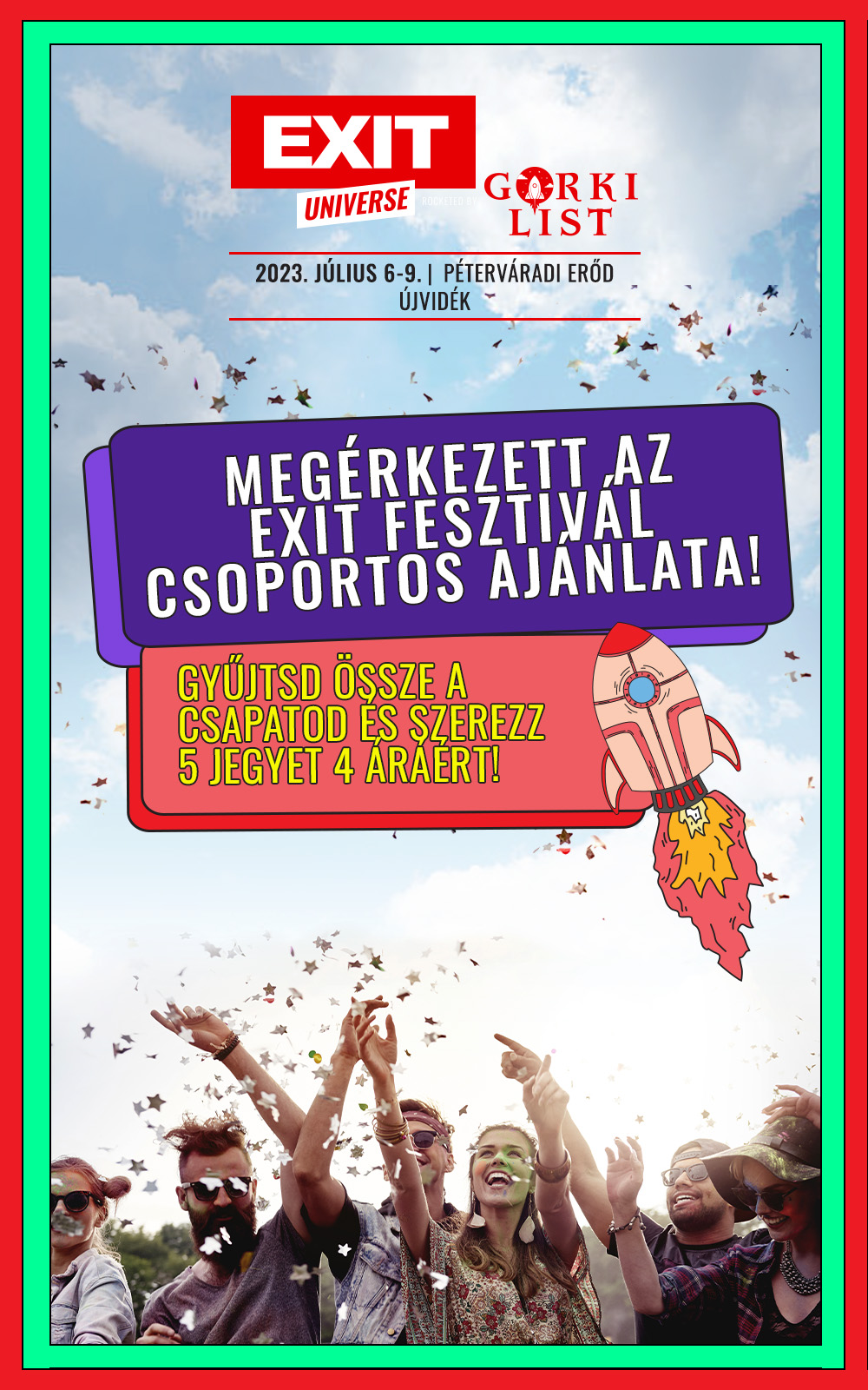 A jubileumi fesztivál mottója, a „State of EXIT” a szabadság, energia és érzelmek birodalmába invitál mindenkit. Egy olyan helyre, ahol nemzetközi társaság, baráti árak, minőségi programok és nem utolsó sorban hatalmas party vár!