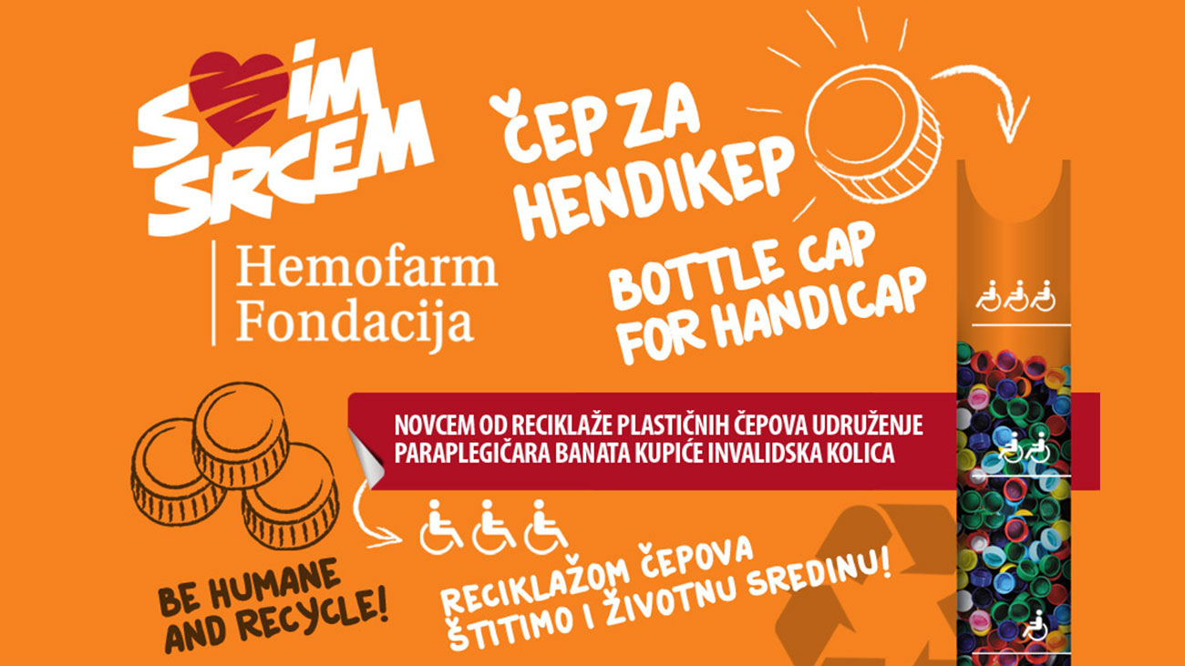 Na inicijativu Hemofarm Fondacije, zaposleni u Hemofarmu su se krajem februara pridružili akciji Udruženja paraplegičara Južnog Banata, postavljajući kutije za prikupljanje plastičnih čepova u fabrikama i poslovnim centrima u Srbiji.