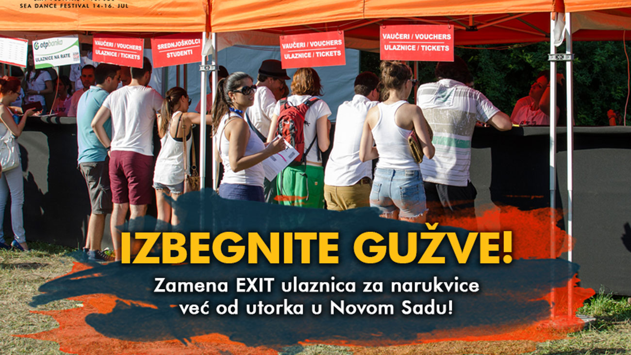 Exit festival vaučer potrebno je zameniti za festivalsku narukvicu koja korisniku omogućava ulazak na festivalski prostor. Zamenska mesta se nalaze u centru Novog Sada, u kampu na Štrandu i u podnožju Petrovaradinske tvrđave, a zamena će biti vršena u sledećim terminima: