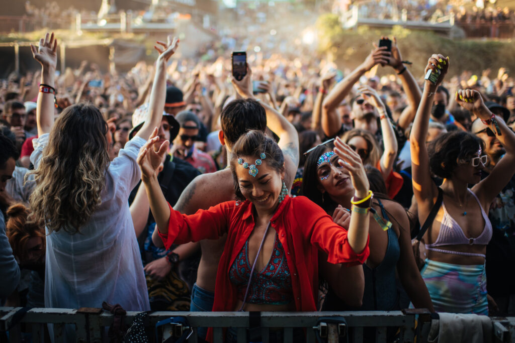 Moj omiljeni EXIT momenat je upravo moja prva fotografija, to kad sunce krene da se probija iznad Dance Arene i energija postane još luđa, kao da ljudi nisu celu noć đuskali.