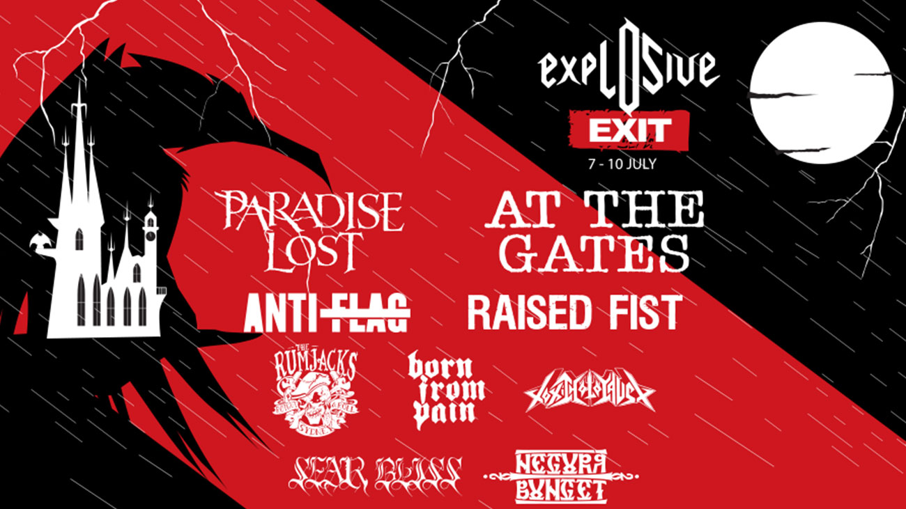 Tvorci čuvene metal scene iz Geteburga, švedski sastav At The Gates predvodiće program završne večeri EXIT festivala, a njima će se pridružiti i fenomen svetske metal/punk scene, Toxic Holocaust! Najžešći provod osiguraće i rumunska koncertna atrakcija Negura Bunget, koji će kombinacijom drevnih instrumenata sa black metal zvukom uputpuniti monumentalan ambijent Explosive bine. Posebno zadovoljstvo da nastupe pred fanovima najžešće bine Exita, imeće jedan od najcenjenijih speed thrash metal sastava stare Jugoslavije, slovenački Bombarder. Iz Slovenije stiže i heavy metal bend Estwind, dok će isto veče nastupiti i heavy italijanska simfonijska metal atrakcija Norhod! Na tvrđavu stiže naš čuveni death metal bend, Amon Din, kao i jedan od najperspektivnijih mladih bendova na domaćoj sceni, War Engine.