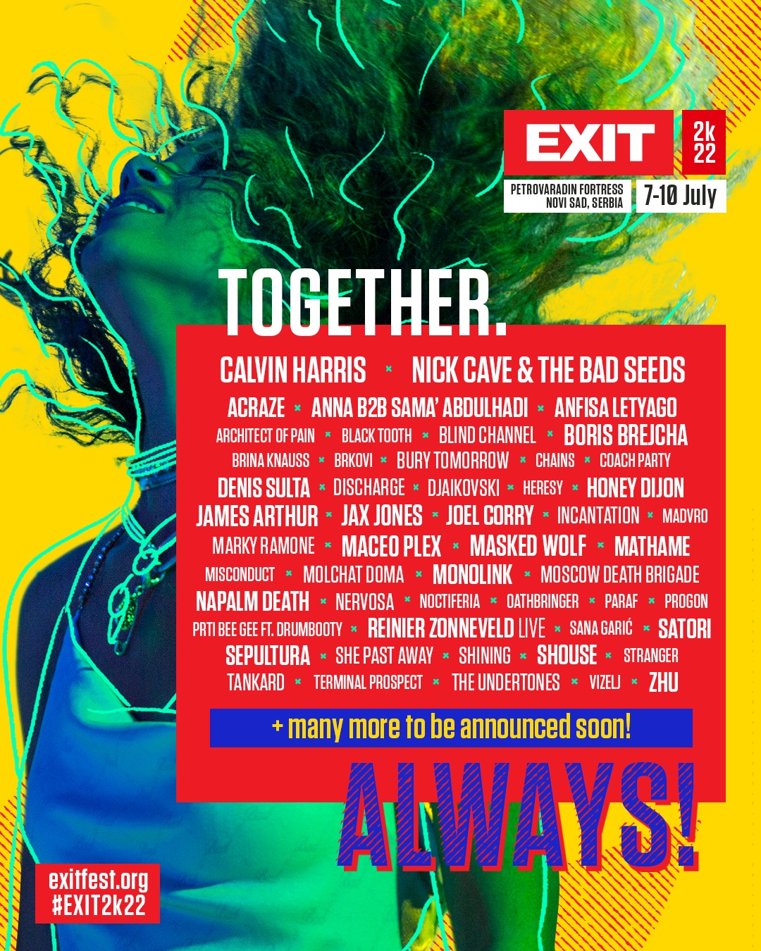 Calvin Harris, ZHU, Shouse, James Arthur en Maceo Plex zijn bevestigd voor EXIT. En dat niet alleen. Ook Nederlandse acts als techno-dj Reinier Zonneveld en Satori (met Servische roots) zijn deze zomer te zien in het Petrovaradin Fort in Novi Sad. De namen voegen zich bij eerder aangekondigde headliner Nick Cave & The Bad Seeds en trance-dj Boris Brejcha.