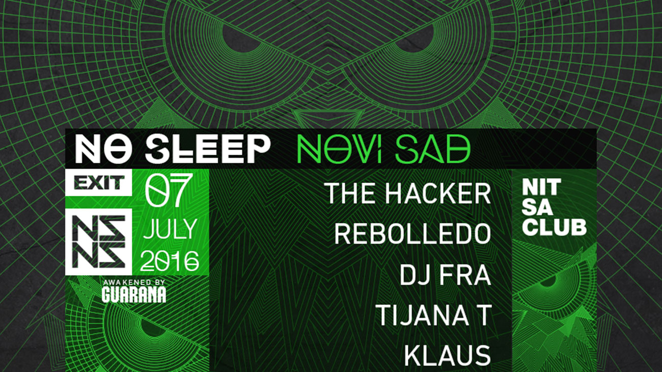 Ovogodišnji koncept No Sleep Novi Sad bine predstaviće četiri noći u znaku nekih od vodećih „underground“ klubova Evrope. Pored kluba Nitsa iz Barcelone, svoj zvuk predstaviće i čuvena tehno institucija Tresor iz Berlina, trenutno možda i najpopularniji evropski klub, Concrete iz Pariza, te udruženi zajedno, najuzbudljiviji austrijski klub Grelle Forelle iz Beča i kultni domaći klub Drugstore iz Beograda. Svoje nastupe na kultnoj bini Exita već su potvrdili Moritz von Oswald, Rebolledo, Tommy Four Seven, Dasha Rush, The Hacker, Zadig, Antigone, Psyk, Francois X, DJ Fra, Tijana T, Shlømo, Lag, Regen, Filip Xavi i Klaus, dok se uskoro očekuje i program završne večeri u nedelju, 10. jula.