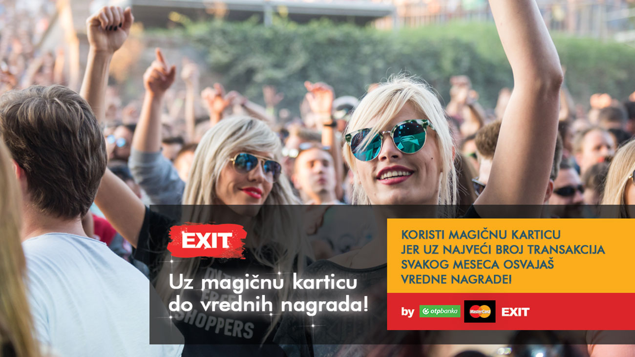EXIT magična kartica omogućava i trogodišnje besplatne bankarske usluge OTP banke u okviru Free paketa OTP banke. Uz magičnu karticu moguće je plaćanje u zemlji i inostranstvu na svim lokacijama sa oznakom MasterCard, kao i plaćanje putem interneta. Više o kartici pročitajte na: www.otpbanka.rs.
