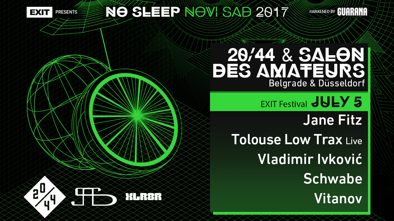 EXIT Festival ove će godine trajati pet dana, a osim glavne bine i mts Dance Arene, i No Sleep Novi Sad bina pokrenuće svoje motore već u sredu, 5. jula! Nakon što je na Petrovaradinsku tvrđavu dovela čuvene svetske klubove i organizovala žurke u Londonu, Barseloni, Briselu i drugim metropolama, #NSNS će na jednu noć preuzeti i kolosalnu mts Dance Arenu. Tako će se nultog dana održati prvi Guarana No Sleep Festival na Exitu, u okviru kojeg će na Areni nastupati Jeff Mills, Ellen Allien, Paula Temple & Rebekah, Lag b2b UVB, Dejan Milićević b2b Marko Milosavljević i Marta b2b Sugar Lobby. A nakon što je objavljen dolazak čuvenih svetskih klubova Sub Club, Fuse, Avant Garde i Concrete, na matičnoj No Sleep Novi Sad bini, u sredu 5. jula pridružiće im se još dva! Direktno iz zgrade dizeldorfskog Kunsthallea na EXIT stiže fascinantni Salon Des Amateurs, a dočekuje ga brod koji ponovo ka tvrđavi plovi pravo iz centra koordinatnog sistema beogradske scene, sa dobro poznatim brojkama: 20/44! Ulaz na No Sleep Festival slobodan je uz svaku EXIT ulaznicu, bilo da je petodnevna, četvorodnevna ili bilo koja jednodnevna.