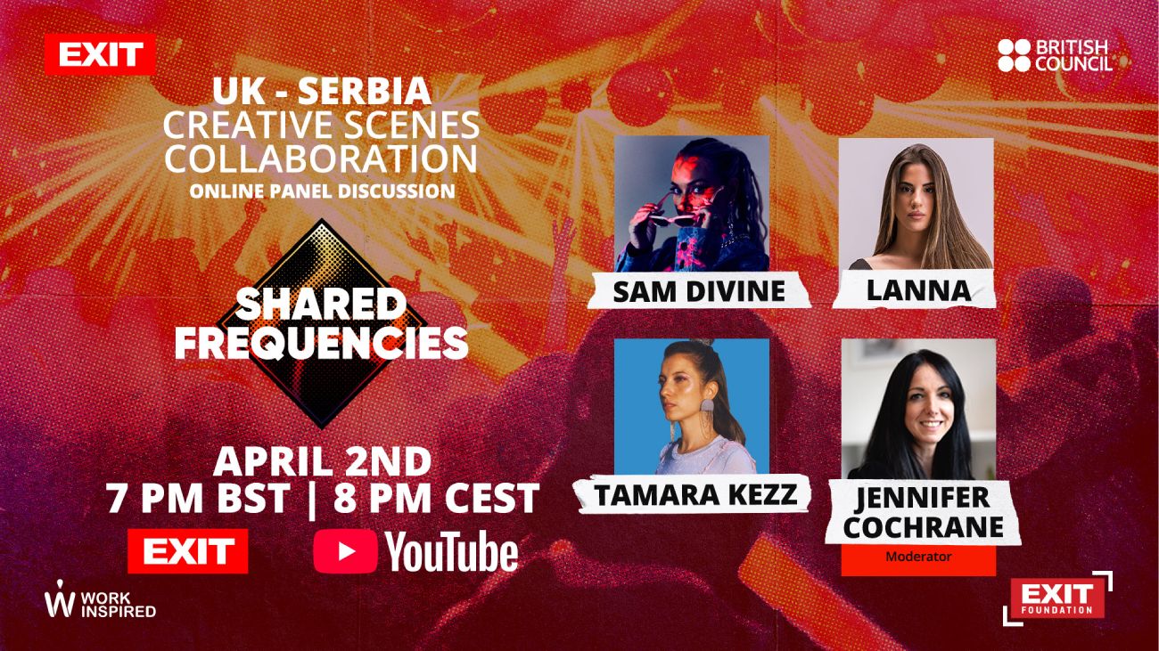 Vebinar počinje 2. aprila u 20:00 časova po srednjoevropskom vremenu (CET) i biće emitovan na YouTube kanalu EXIT festivala. Publika je pozvana da unapred pošalje pitanja na [email protected], najkasnije do 1. aprila.