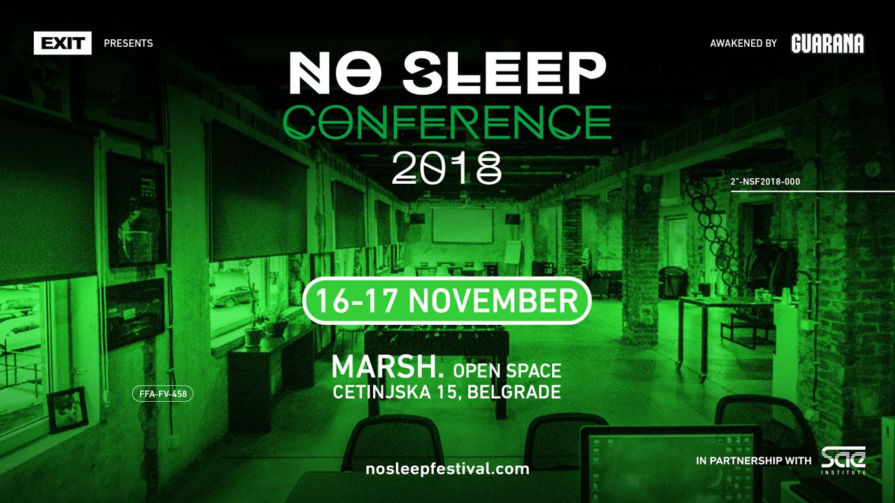 Nakon što je objavljena strahovita postava No Sleep Festivala, koju predvode Fatboy Slim, Nina Kraviz, Lee Burridge, Cassius, DJ Tennis, Olof Dreijer, Aleksi Perälä, Dax J, Randomer i brojni drugi, najavljen je i specijalni festivalski program, No Sleep konferencija! U petak i subotu, 16. i 17. novembra za sve posetioce festivala u saradnji sa SAE Institutom pripremljen je specijalni edukativni konferencijski sadržaj u okviru koga će govoriti brojni festivalski izvođači!