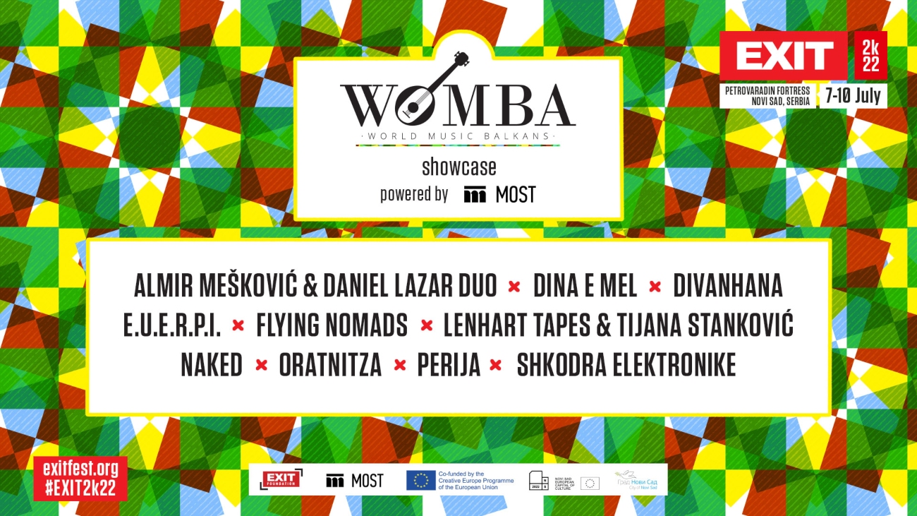 Izvođače i učesnike premijernog WOMBA Showcase-a, koji će ove godine biti predstavljen na EXIT festivalu, čine zvezde i talenti u usponu u selekciji žirija Muzičkog projekta MOST. WOMBA Showcase takođe je podržavaju Fondacija „Novi Sad – Evropska prestonica kulture“ u okviru programskog luka „Tvrđava mira“ i Gradska uprava za kulturu Grada Novog Sada.