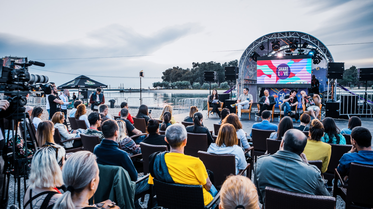 Na tribini su govorili braća sa Atlantide Momčilo Bajagić Bajaga i frontmen „Hladnog piva“ Mile Kekin, gradonačelnik Umaga Vili Bassanese, dok je domaćin bio Dušan Kovačević, osnivač regionalne porodice festivala, svetski čuvenog Exita iz Srbije, ali i drugih koji strelovito idu njegovim koracima, među kojima su Sea Star iz Hrvatske i Sea Dance iz Crne Gore. Upravo ova regionalna dimenzija saradnje bila je u fokusu #ShareLove tribine koja je, pred do kraja ispunjenim auditorijumom, pokazala ujedinjenost u želji da živimo u normalnom i civilizovanom društvu.
